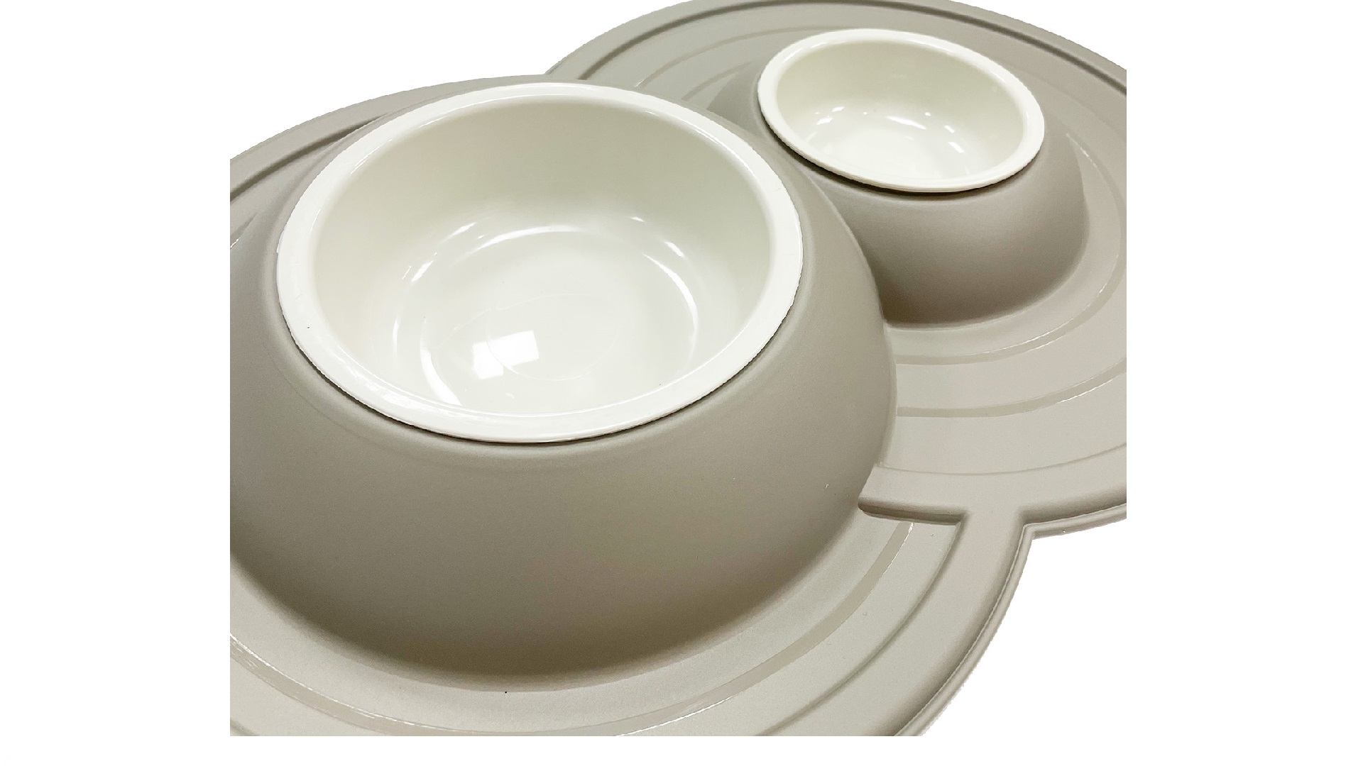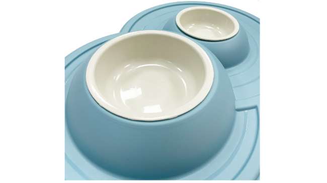 Διπλά στρογγυλά μπολάκια νερού και φαγητού για το κατοικίδιο σας με επέκταση του υλικού του περιμετρικά, για προστασία καθαριότητας της περιοχής.